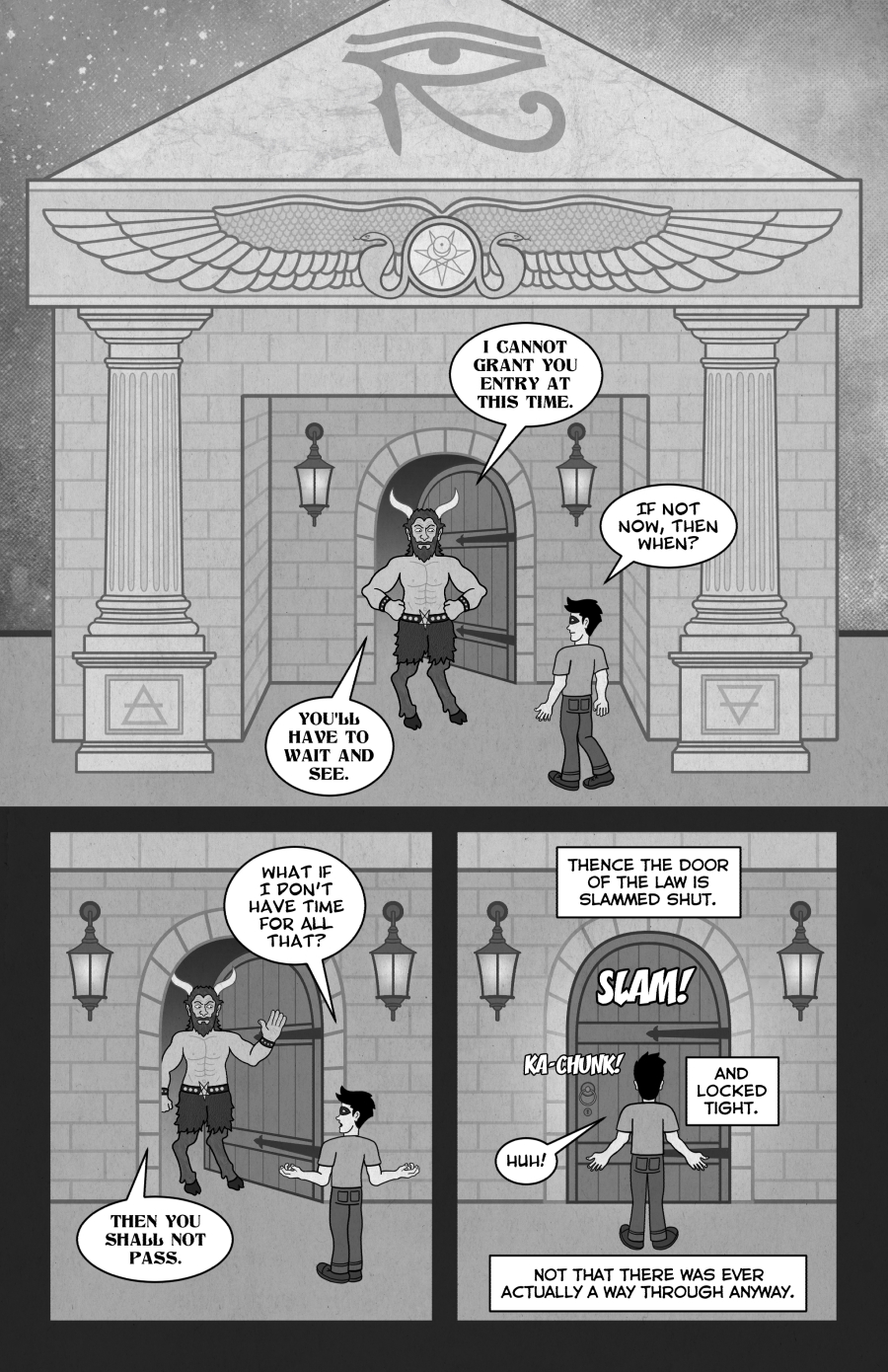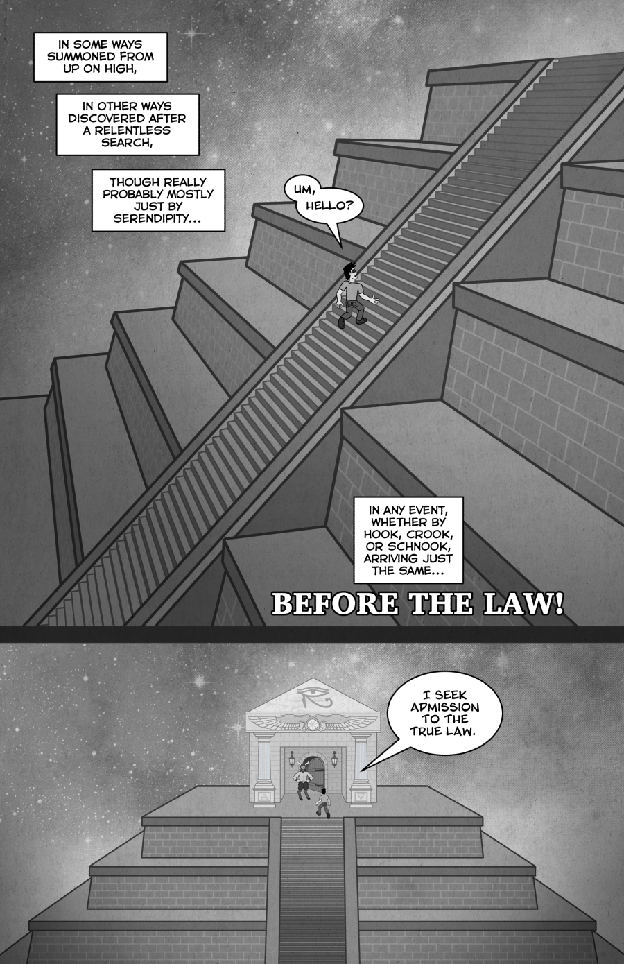 AGNOSIS! EP. 30 “BEFORE THE LAW” By Bobby Campbell Continued from BUDDHAFART – EP. 20 “RECURSION” OKEY-DOKEY – THE STORY SO FAR… TO BE CONTINUED!